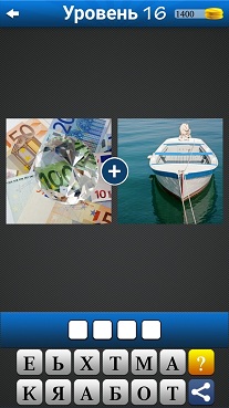 2 картинки 1 слово - 16 уровень 1. Несколько денежных купюр 2. Деревянная лодка с мотором Ответ: ЯХТА |