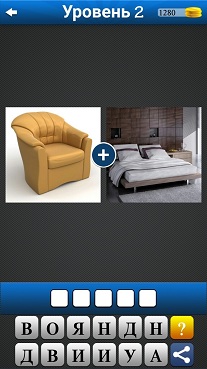 2 картинки 1 слово - 2 уровень 1. Кожаное кресло 2. Спальная комната, а посередине двухспальная кровать Ответ: ДИВАН |