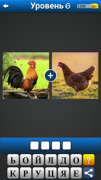 2 картинки 1 слово - 6 уровень 1. Петух 2. Курица Ответ: ЯЙЦО |