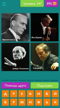 1. На фотографиях изображены знаменитые дирижеры: Мравинский, Фон Караян, Тосканини, Гергиев