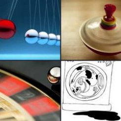 4 фото 1 слово ответы уровень 344: 1. Маятник "вечный двигатель" из металлических шариков 2. Детская игрушка, юла 3. Шарик в рулетке 4. Стиральная машина 7 букв Правильный ответ - ИНЕРЦИЯ |