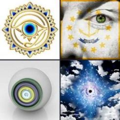 4 фото 1 слово ответы уровень 349: 1. Печать, герб, символ в форме глаза 2. Зелёный глаз с какой-то картины, морской якорь, надпись Hope 3. Шар с кнопкой включения посередине 4. Глаз смотрит с неба сквозь облака 3 буквы Правильный ответ - ОКО |