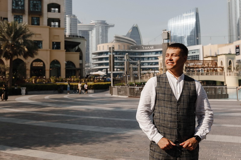 Дмитрий занимается недвижимостью в Дубае и ему время от времени нужны свежие фотографии для ведения соцсетей и использования в маркетинге. Фотографии должны отражать не только его профессионализм, но и креативный подход к решению разных задач клиентов. Важно было снять за один раз несколько образов, в разных локациях в пределах Даунтауна, поэтому мы заложили на съёмку 2 часа с учётом всех перемещений и переодеваний.