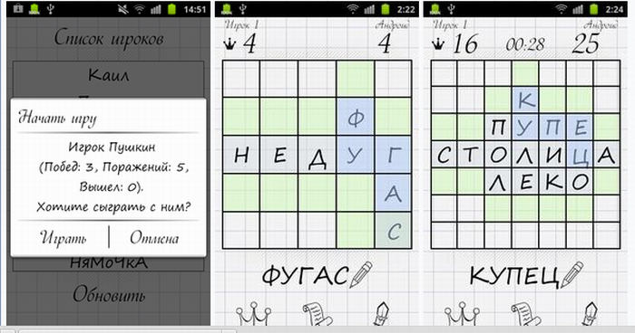 Игра предусматривает пополнение словаря при желании участников. Если в системе не предусмотрено то или иное слово, вы можете с легкостью его добавить, однако для честной игры необходимо быть уверенным, существует ли такое слово на самом деле. Кстати, если оппонент в виде живого игрока или андроида придумал несуществующее слово, его можно добавить в черный список с целью дальнейшего необнаружения. Балда очень проста в оформлении, не имеет замысловатой графики и анимации, которая отвлекала бы во время игры.
