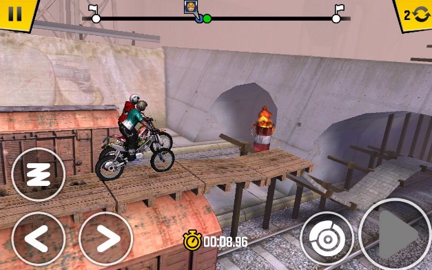 Заезды есть как одиночные, так и не совсем. Одиночная кампания вполне полноценная, состоит из четырех актов-локаций - депо, стройка, каньон и заброшенный порт - с разными трассами в каждой местности. Но в целом имеется и своего рода мультиплеер. Режим «Дуэль» позволит посоревноваться с друзьями, приглашенными с помощью фейсбука. Сперва проходите вы, потом друг. Кто был быстрее, получает выигрыш. Есть и иная тень мультиплеера - в прямом смысле. На вступительных уровнях вы можно обогнать «призрак» другого реального игрока. Обгон даст дополнительные преимущества.