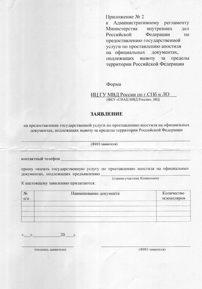 Бланк заявление на апостиль      Пример заполнения заявления на апостиль