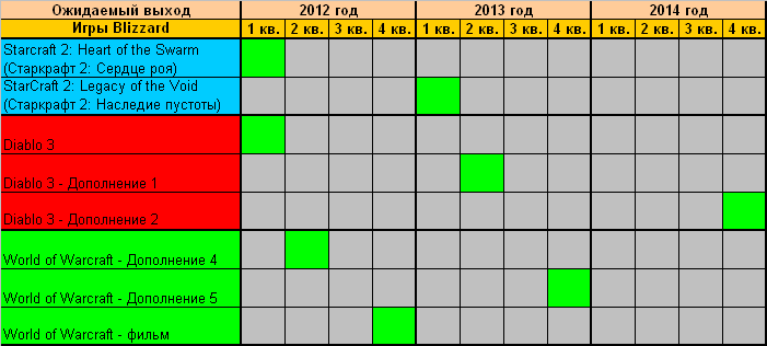 План релизов Blizzard на 2012-2014 год