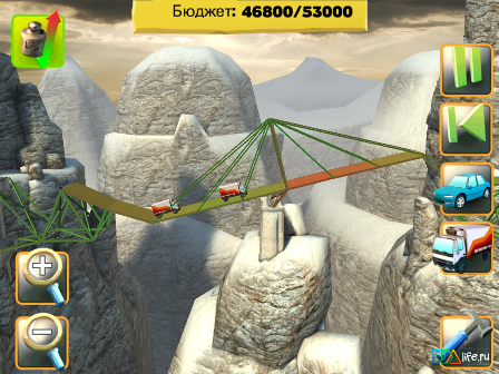 Суть игры Bridge Constructor на андроид очень проста. Вам придется заниматься постройкой мостов, которые будут проходить через большие овраги или реки. Игроку дается определенное количество денег на каждом отдельном уровне. На них вы сможете покупать требующиеся материалы.